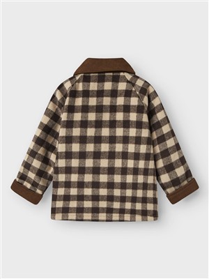 Cappotto in panno a quadri marrone e panna con colletto in velluto millerighe marrone Lil Atelier