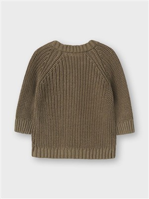 Cardigan in lana misto cashmere verdone con profili blu e orsetto Per te