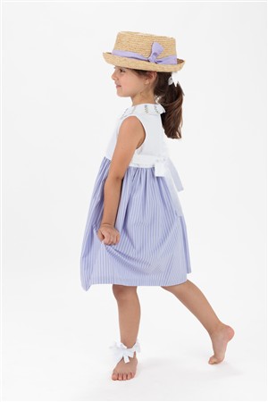 Abito smanicato a righe glicine e viola con colletto dipinto a mano Il Faro Bimbi