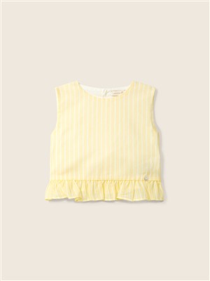 Completo bermuda e maglia smanicata con rouches a righe giallo e bianco Wedoble