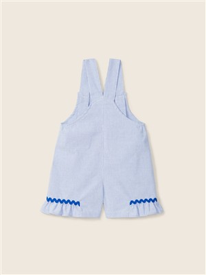 Salopette a righe blu e bianco con rouches con fettuccia blu Wedoble