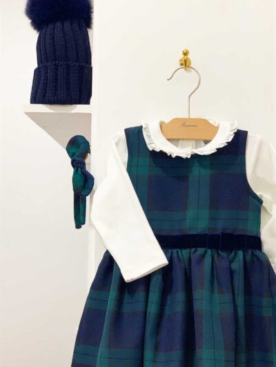 Abito in felpa con gonna e colletto tartan rosso Baroni