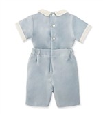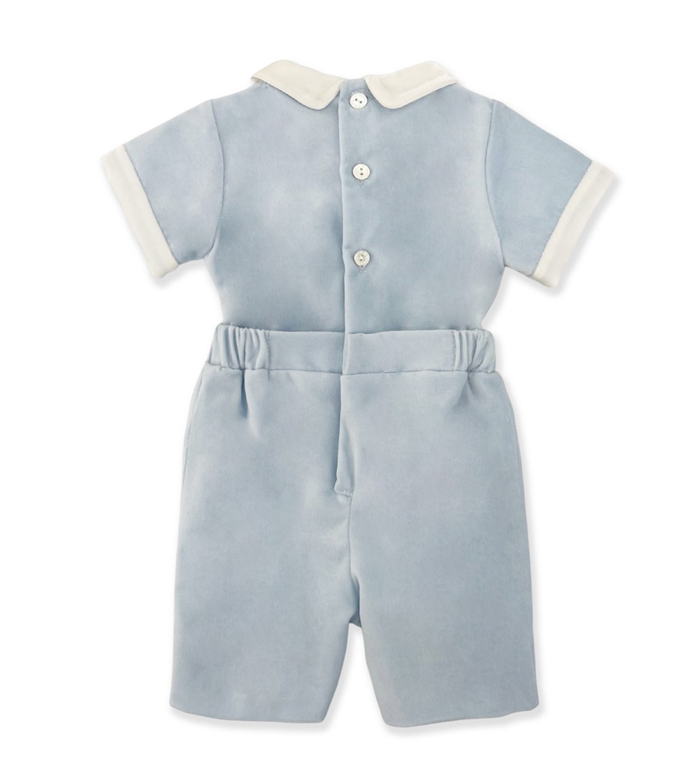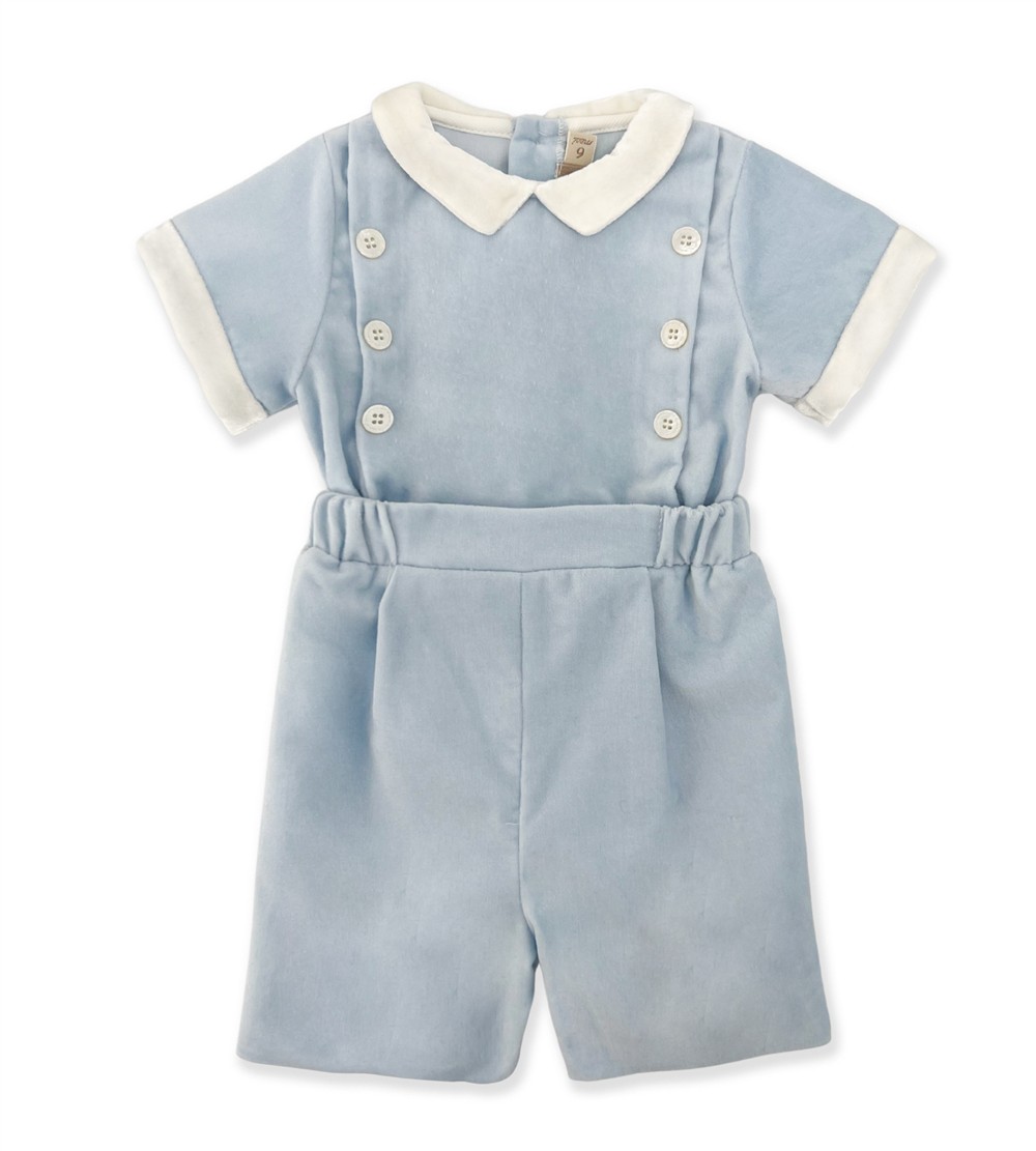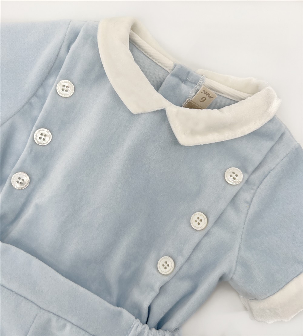 Pagliaccetto in velluto celeste con bottoni in madreperla