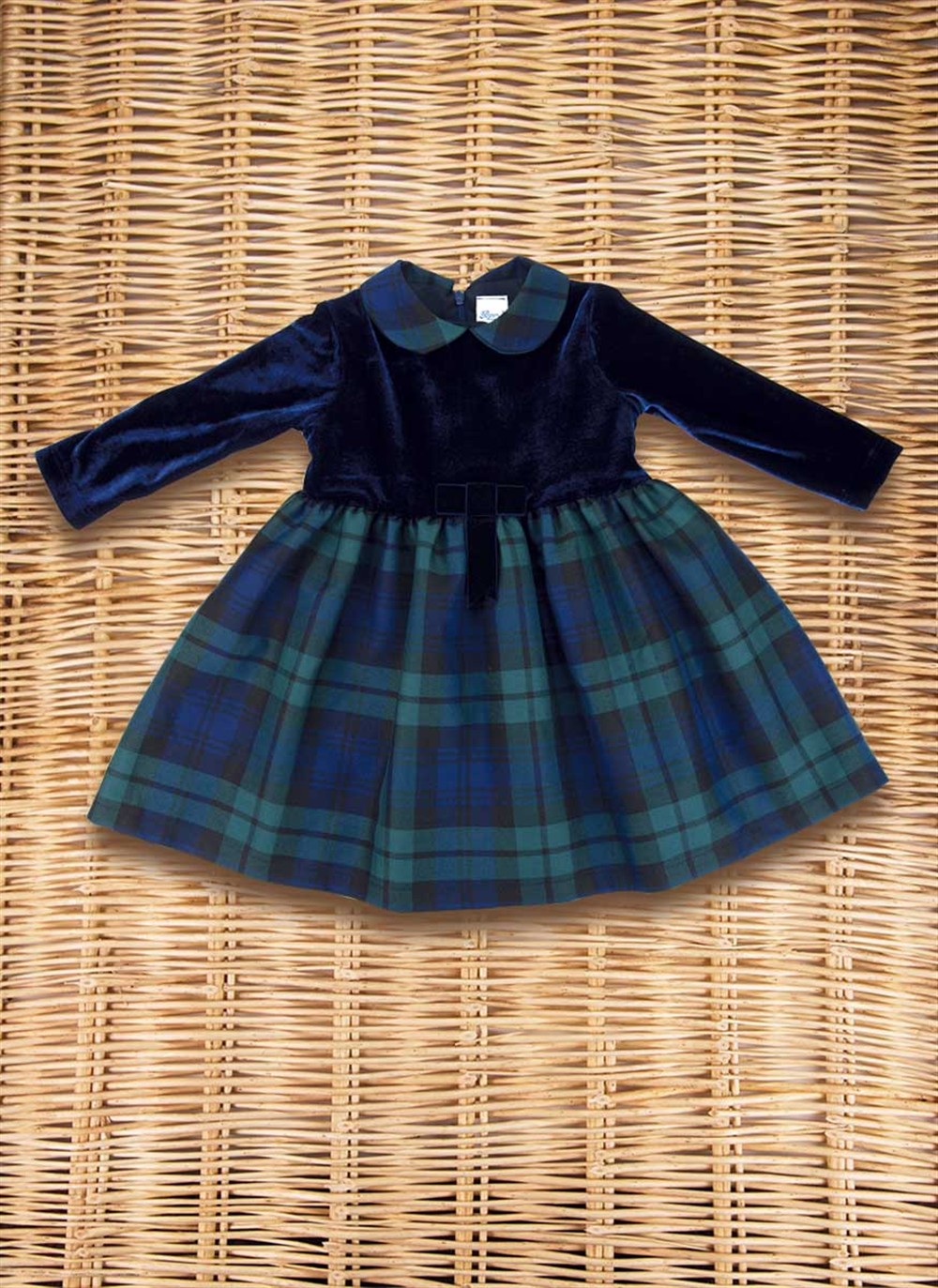 Abito in velluto e lana scozzese blu/verde