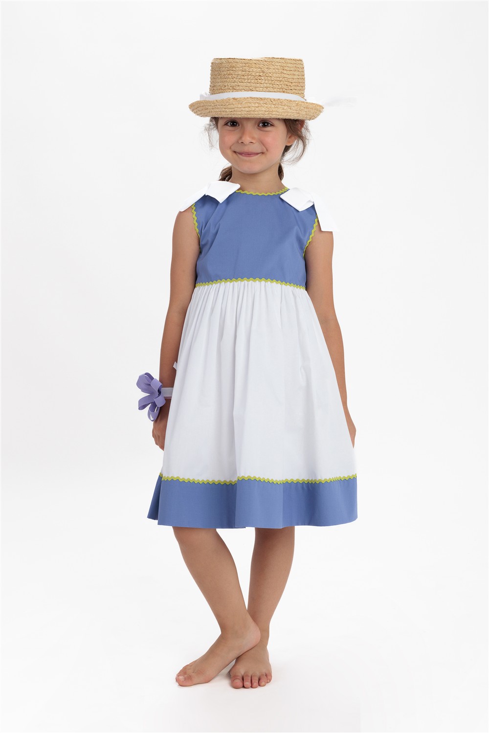Abito smanicato viola e bianco con fettucce verde mela Il Faro Bimbi