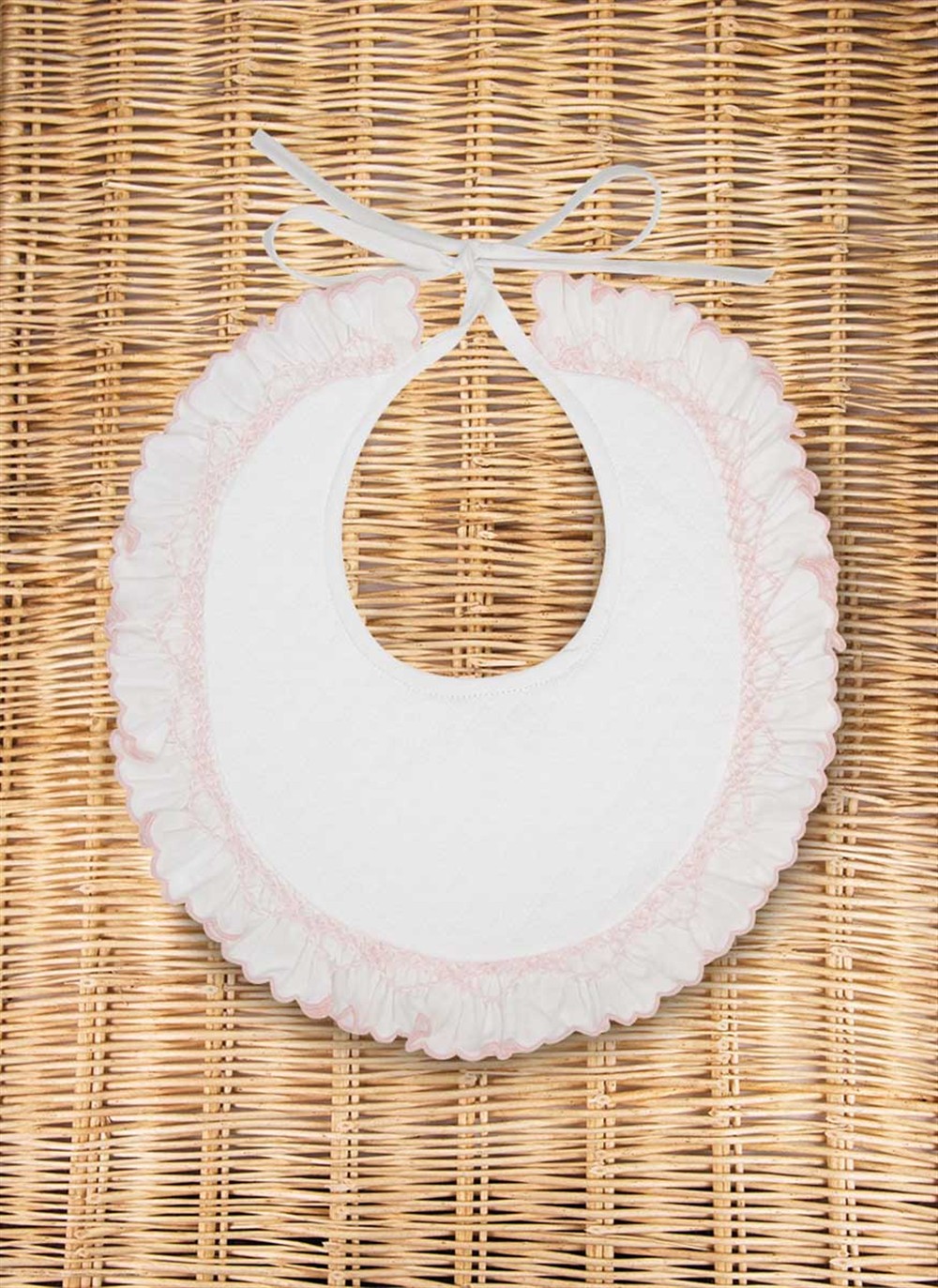Bavaglino a nido d’ape con ricamo punto smock rosa