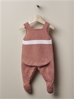 Salopette in lana rosa pesco con banda bianca