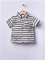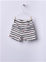 Completo in cotone grezzo a righe panna e nero con pesciolino rossi