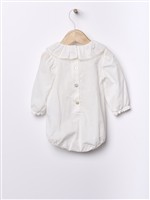 Body a manica lunga in cotone bianco con collo rouche profilo in pizzo