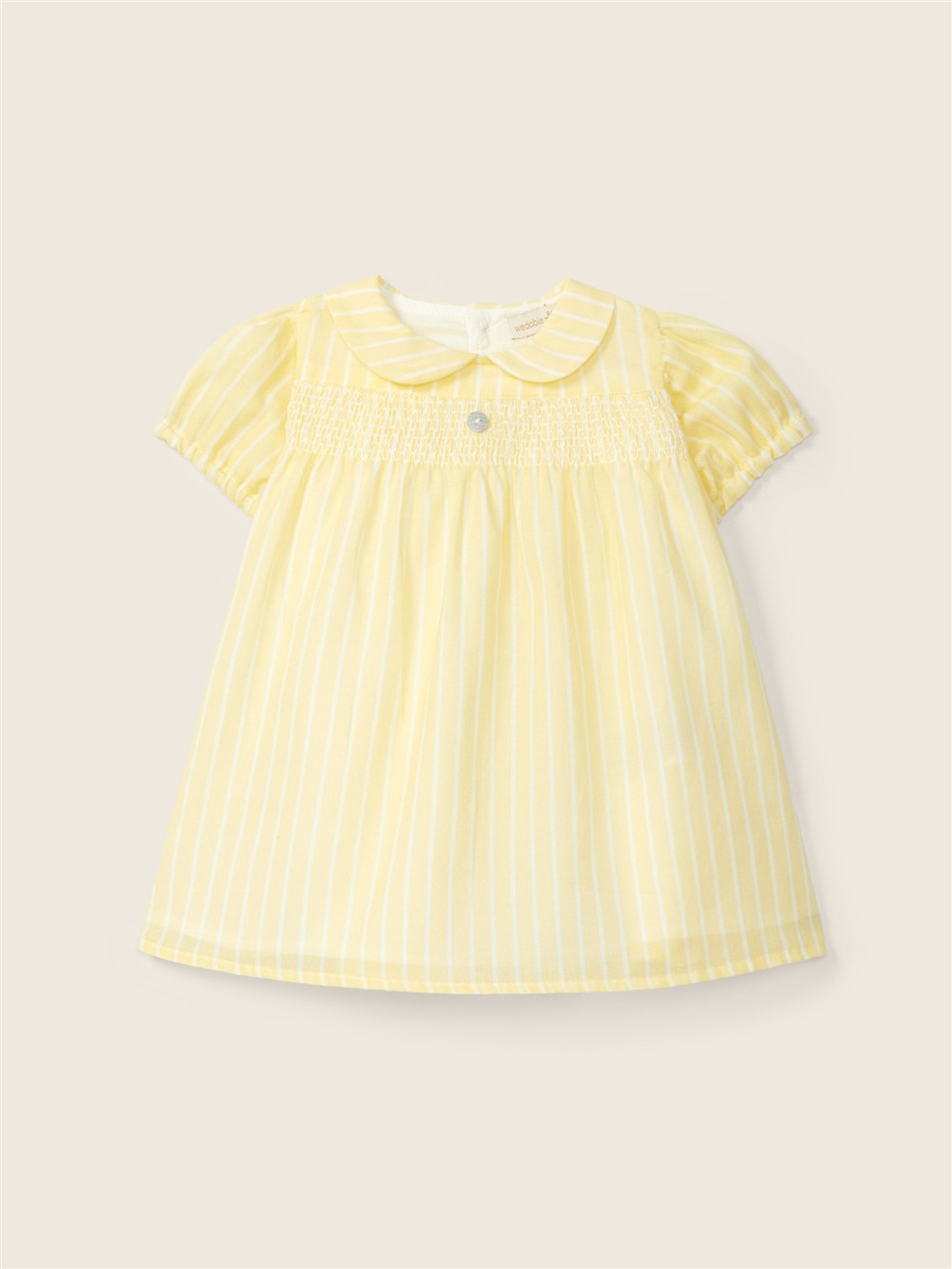 Abito punto smock con manica a sbuffo a righe giallo e bianco