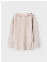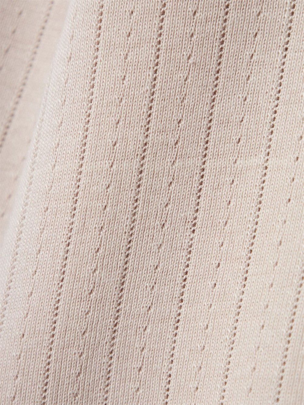 T-shirt in cotone traforato con collo rouche rosa cipria