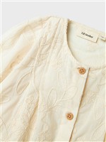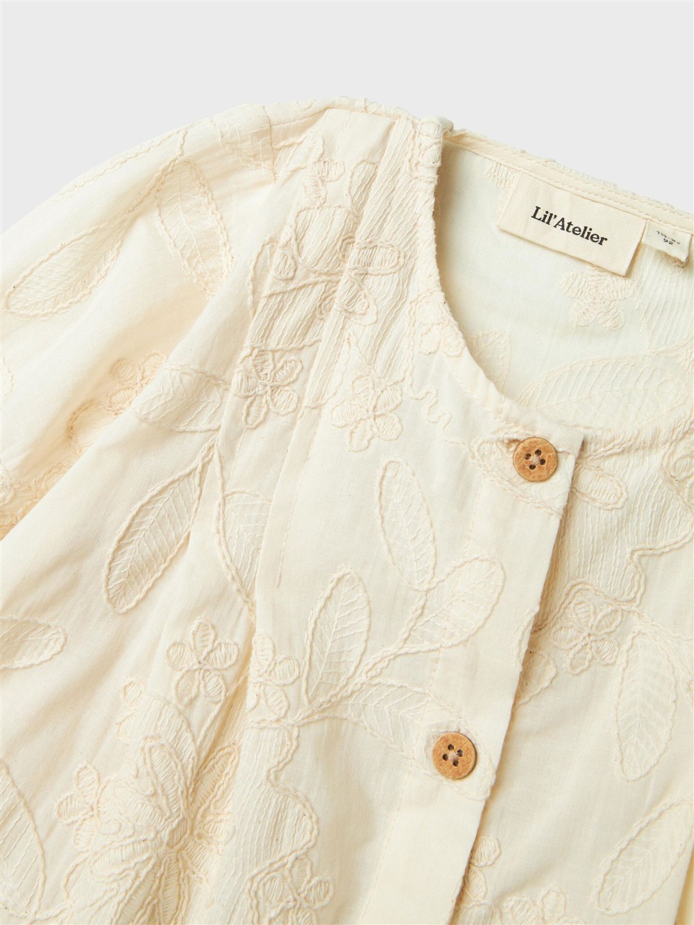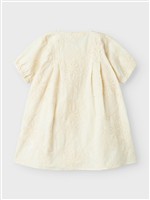Abito beige con fiori intarsiati e apertura con bottoncini