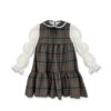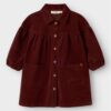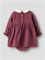 Abitino in caldo cotone vinaccia con body integrato e colletto panna ricami fiori Lil Atelier