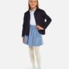 Giacca blazer in velluto millerighe con bordo smerlato blu