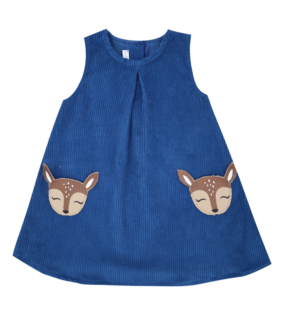 Abito smanicato in velluto a coste bluette con taschine cerbiatto