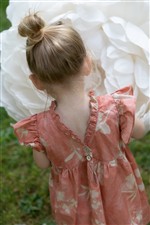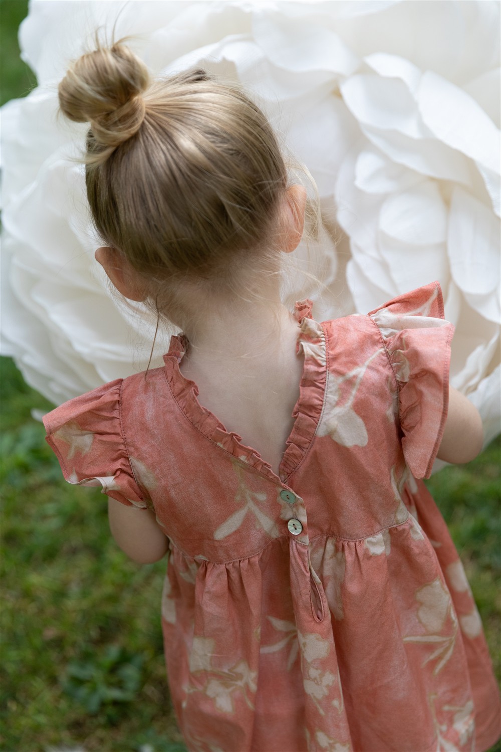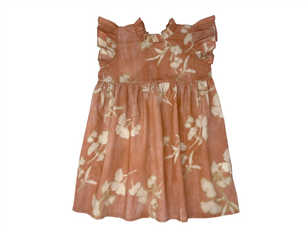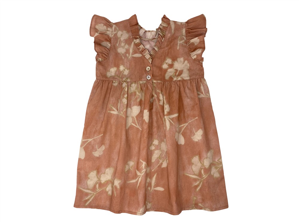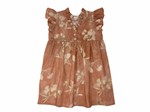 Abito al ginocchio con alette color pesca con fiori beige