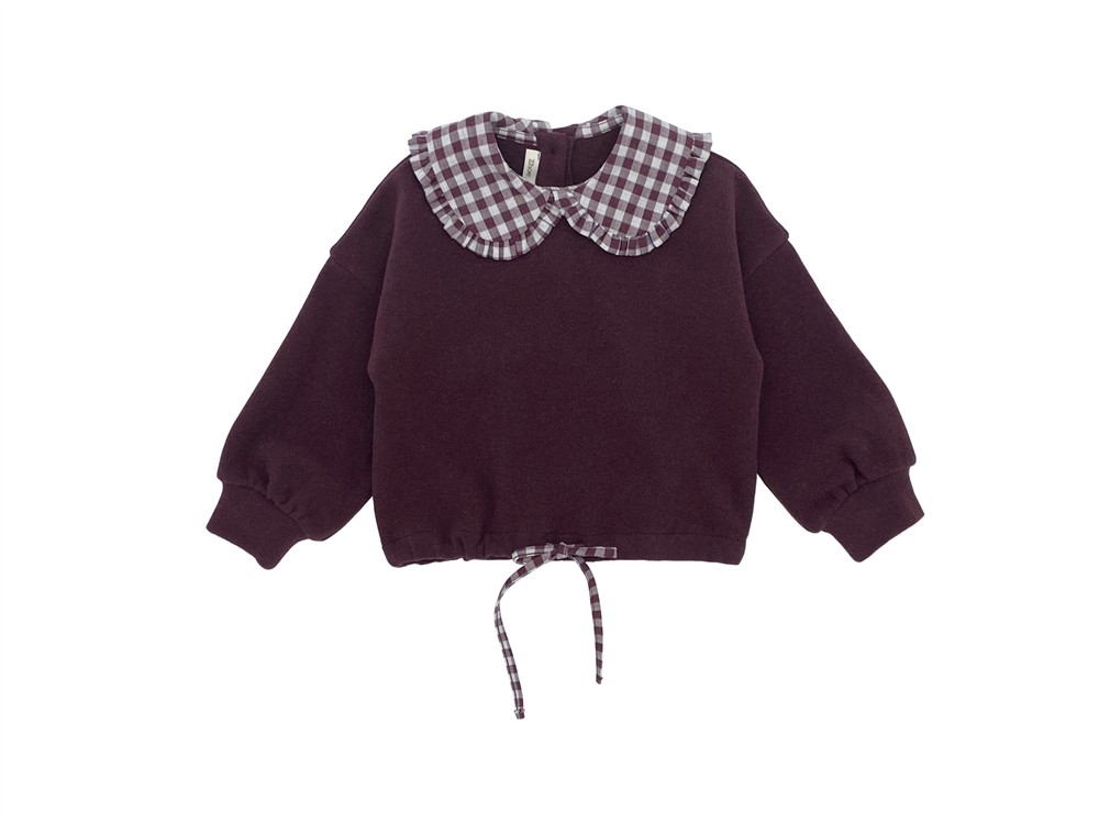 Maglia crop in caldo cotone bordeaux con colletto vichy