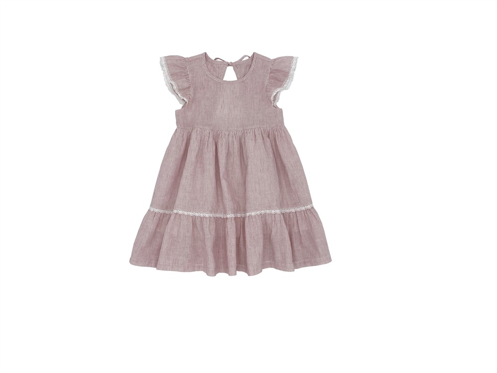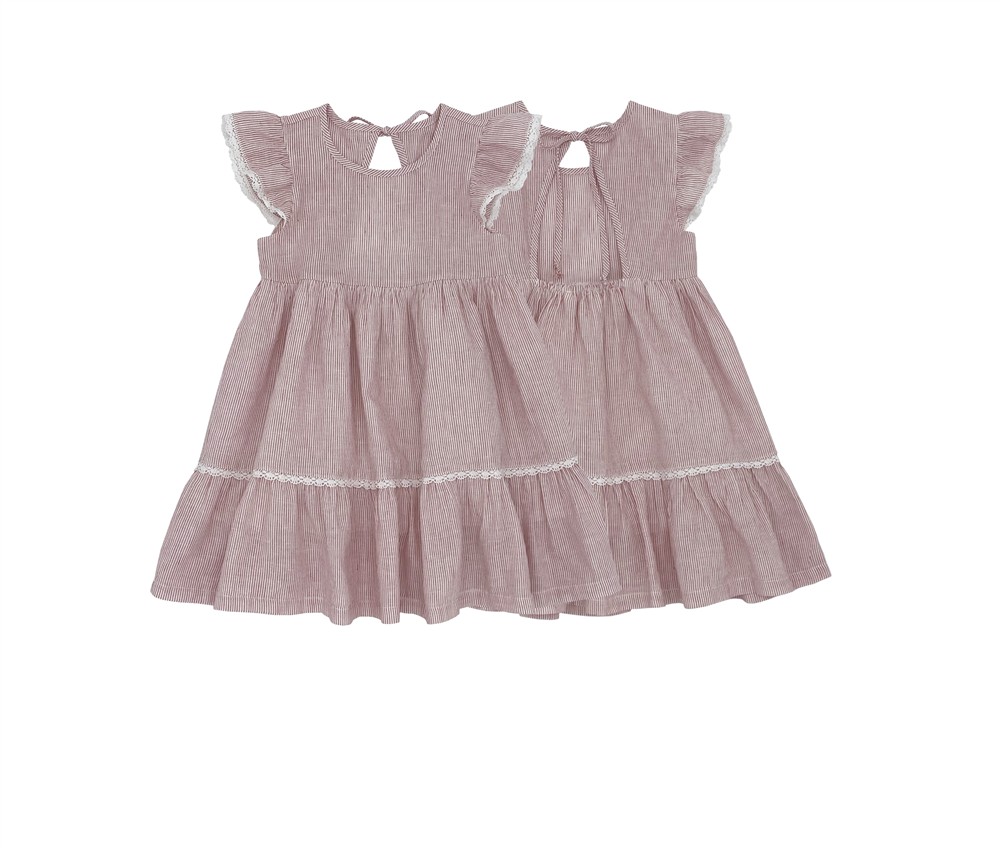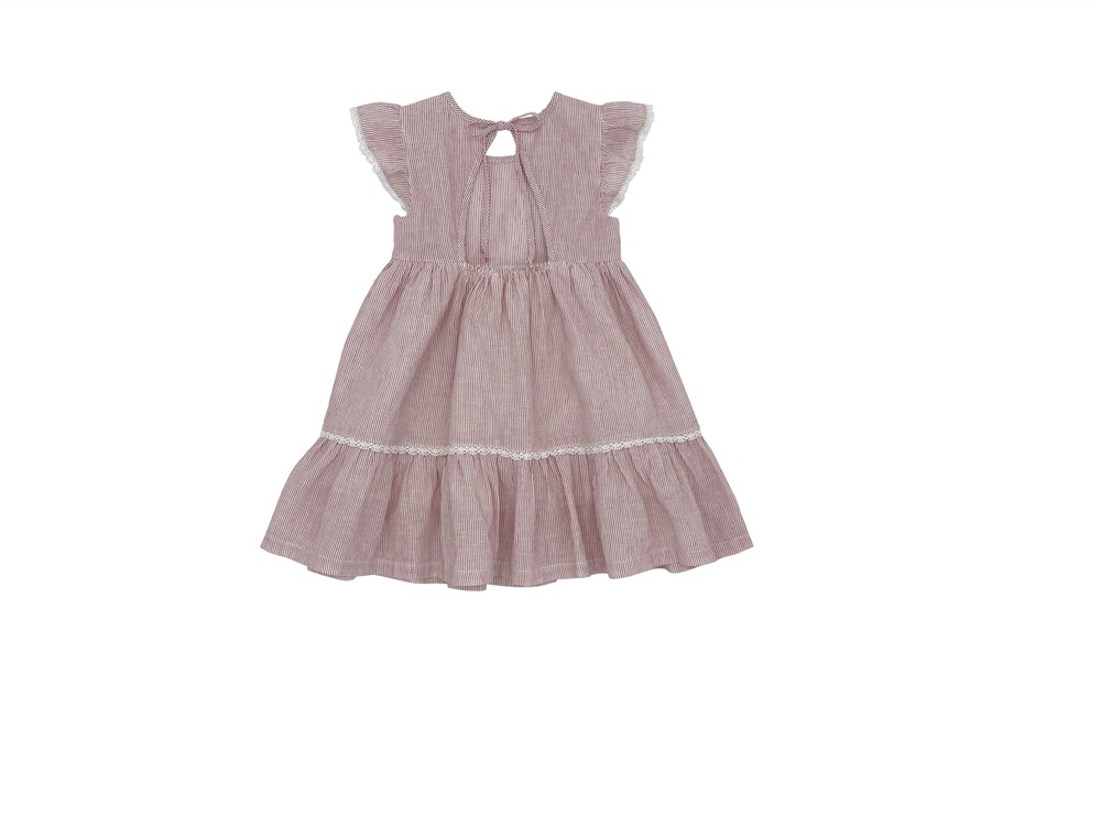 Abito con alette in cotone a righe bianco e amarena