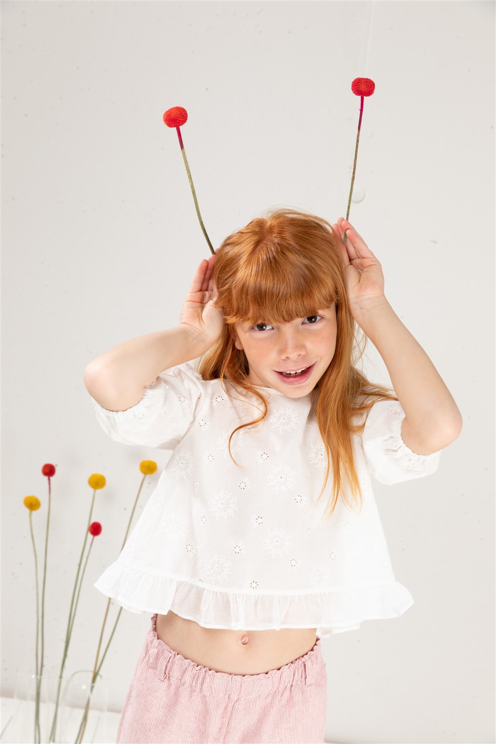 Camicia crop a tre quarti in pizzo san gallo bianca