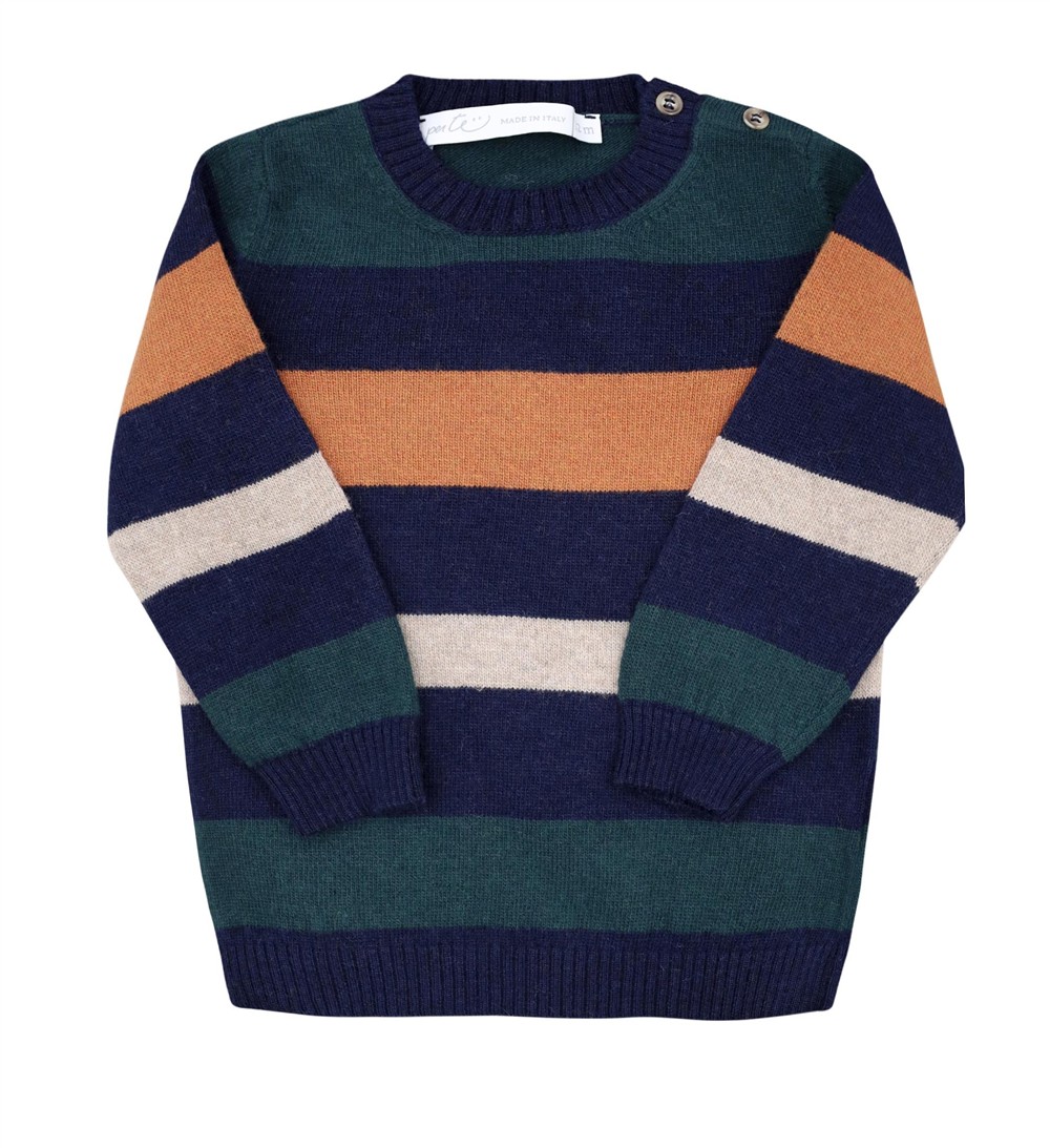 Maglione in lana misto cashmere a righe blu, zucca e verde