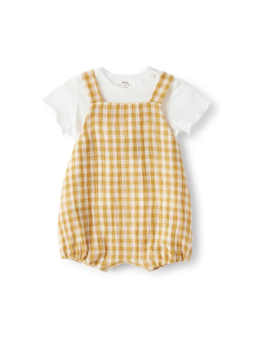 Salopette e t-shirt bianco e miele