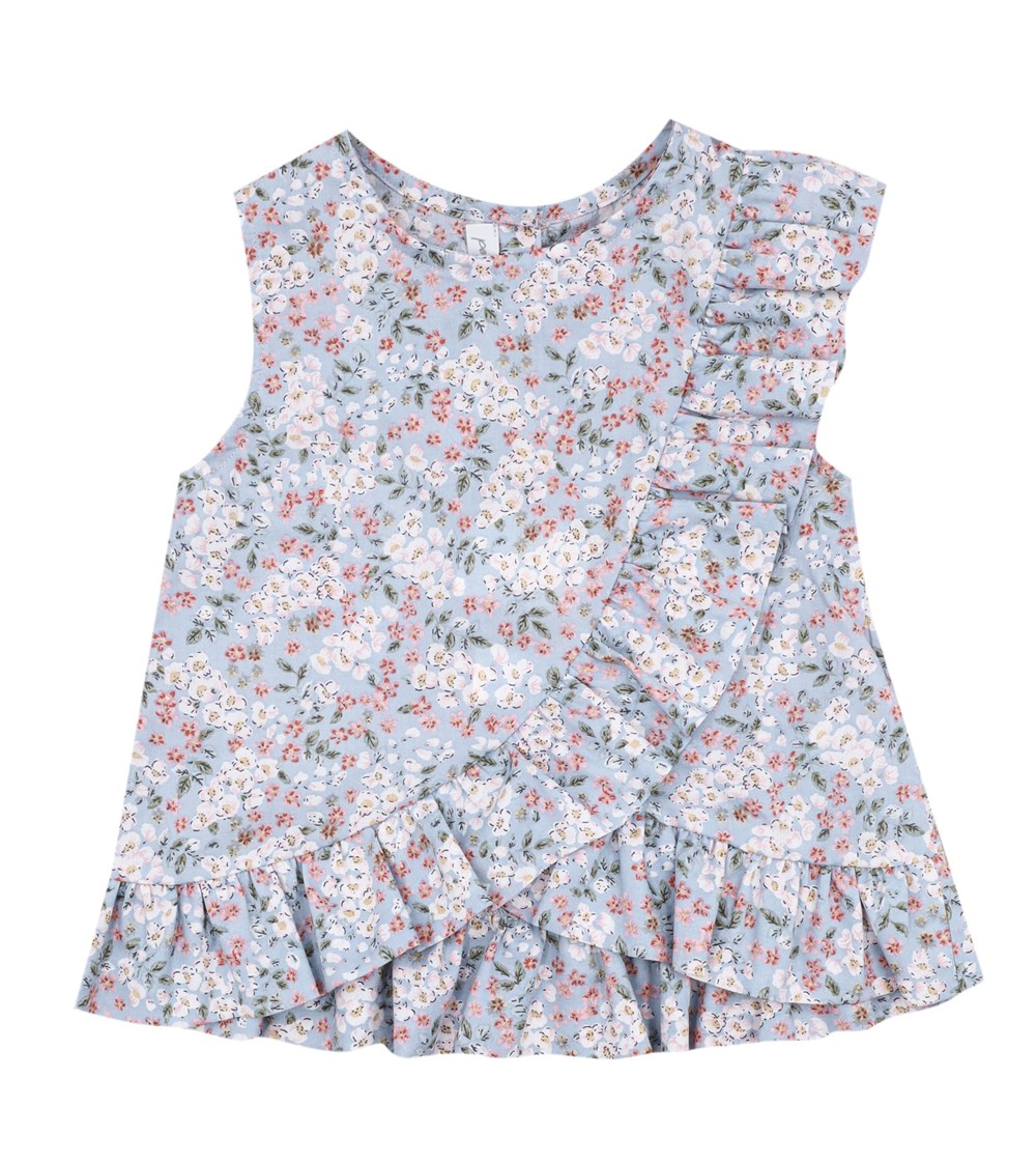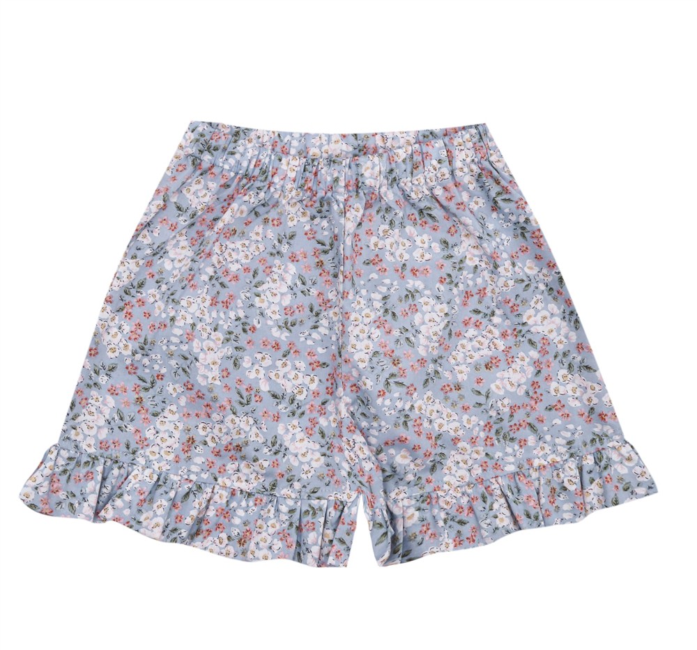 Completo bermuda rouche azzurro a fiori con fiorellino francese Per te
