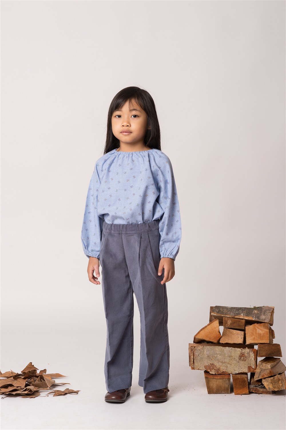 Pantalone in velluto millerighe con elastico carta da zucchero