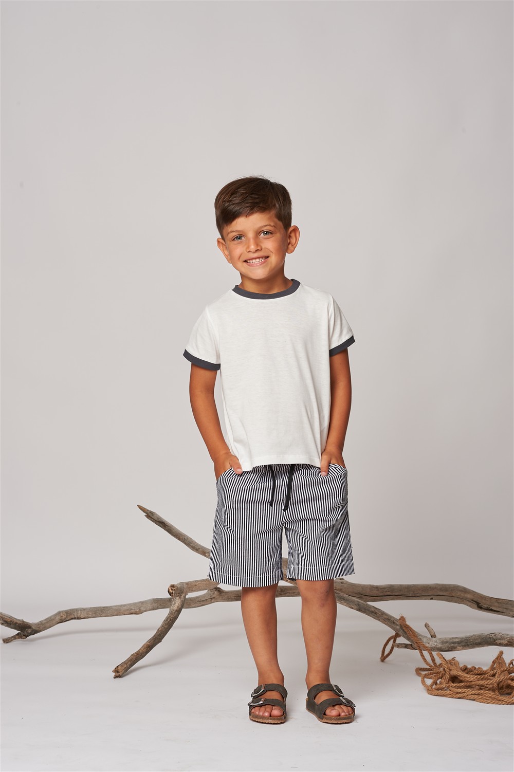 Completo t-shirt bianca e bermuda a righe bianche e nere Latitta